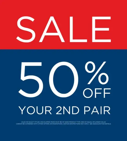 VALID ON SELECT STYLES. DISCOUNTED ITEMS MUST BE OF SAME PRODUCT TYPE AND OF EQUAL OR LESSER VALUE. CANNOT BE COMBINED WITH OTHER OFFERS OR PROMOTIONS. CERTAIN RESTRICTIONS MAY APPLY. SEE ASSOCIATE FOR DETAILS.